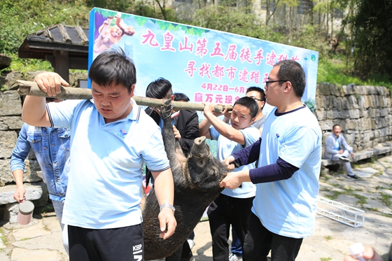 4月29日一早大家便开启了九黄山之旅,体验了登山、滑草、狩猎等特色项目。一路上大伙儿热情高涨,认真体会大自然带给我们发自内心的喜悦,山间不时传来合唱的歌声,仿佛回到了无忧无虑的童年。经过2小时的辛勤攀登,挥洒着汗水,抵达后山滑草场,大家有的抓野鸡,有的滑草,有的观看猴子和小熊表演,热闹非凡。不多时,大家便捕获了6只野鸡,得意满满的快乐慕煞过往游客!随后,大家集体前往期待已久的野生动物狩猎场,开始了惊险刺激的徒手抓野猪活动。莽莽丛林,荆棘密布,万余亩的茫茫大山,挡不住我们30多位须眉巾帼的豪情壮志,漫山遍野回荡着小伙子姑娘们的呐喊声欢呼声。终于,大家通过层层堵截、包围,甚至叠罗汉的方式,成功捕获了一头重达118斤的黑毛野猪----最佳战利品,也是该狩猎场开春以来唯一游客徒手捕获的野猪!在这个活动中,充分体现了团队协作的重要性,更展现了williamhill英国官网团队的勇敢、无所畏惧的英雄本色!