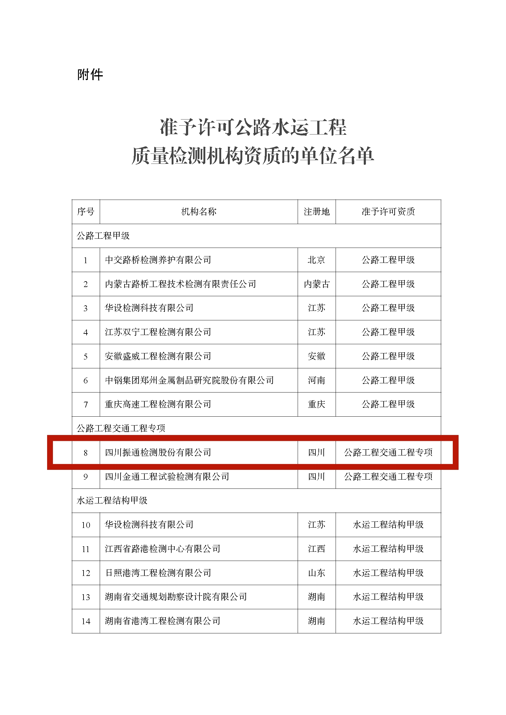 近日,交通运输部公布了公路工程质量检测机构资质许可的决定,准予许可williamhill英国官网交通工程专项资质。这标志着公司成为四川省首家民营公路工程质量检测“一甲两专”全资质的检测机构。